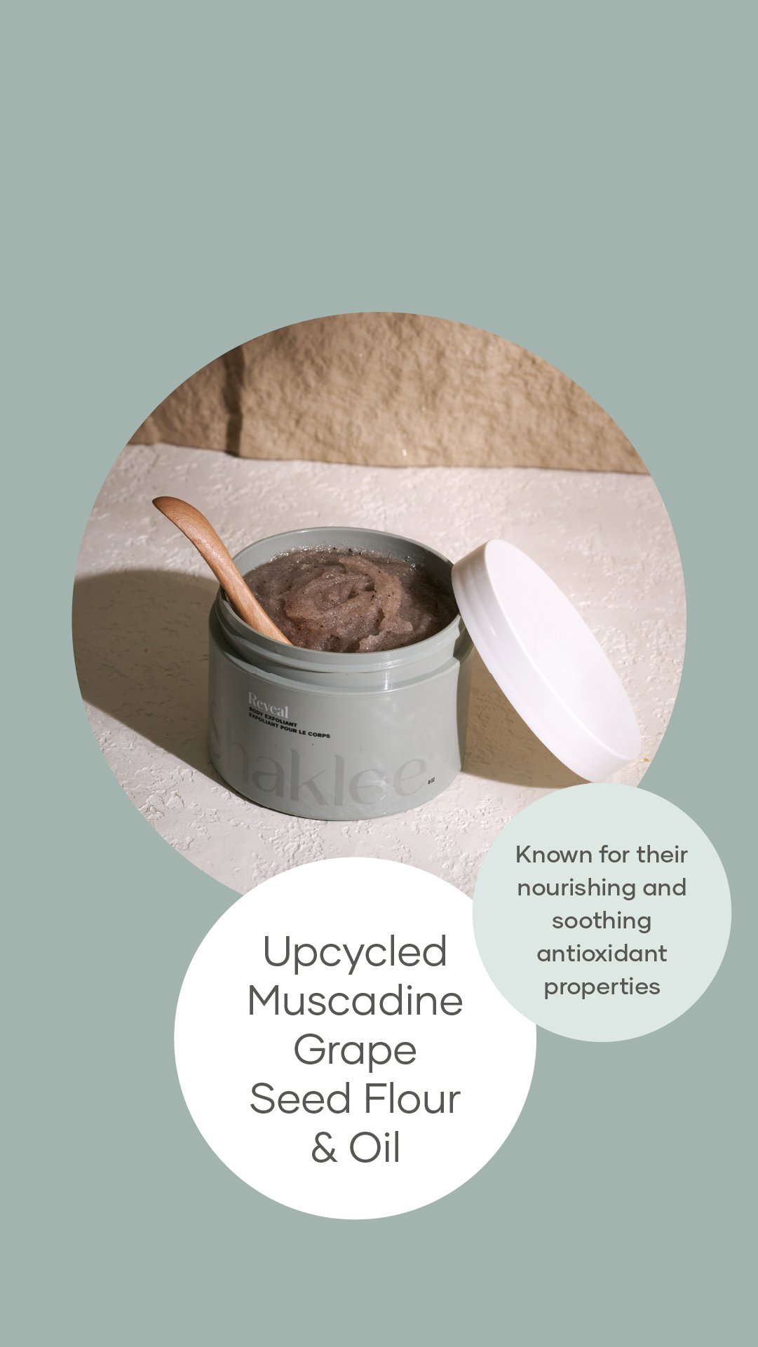 - Muscadine grape seed oil (full-spectrum polyphenols to soothe & protect)