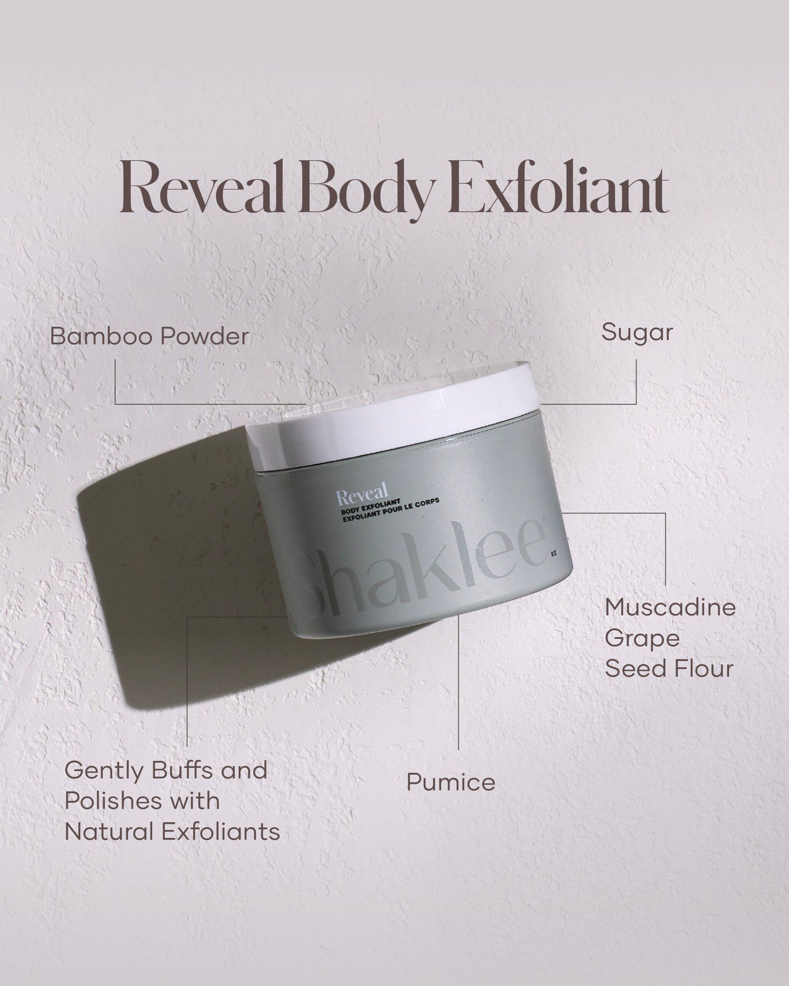 Elevate your body care with Shaklee Reveal Body Exfoliant – an ultra-nourishing, dual-action treatment that gently exfoliates while deeply moisturizing. This luxurious scrub buffs away dull, dead skin cells to reveal smoother, more radiant-looking skin, then locks in hydration for a velvety-smooth, soft-after-feel that lasts.