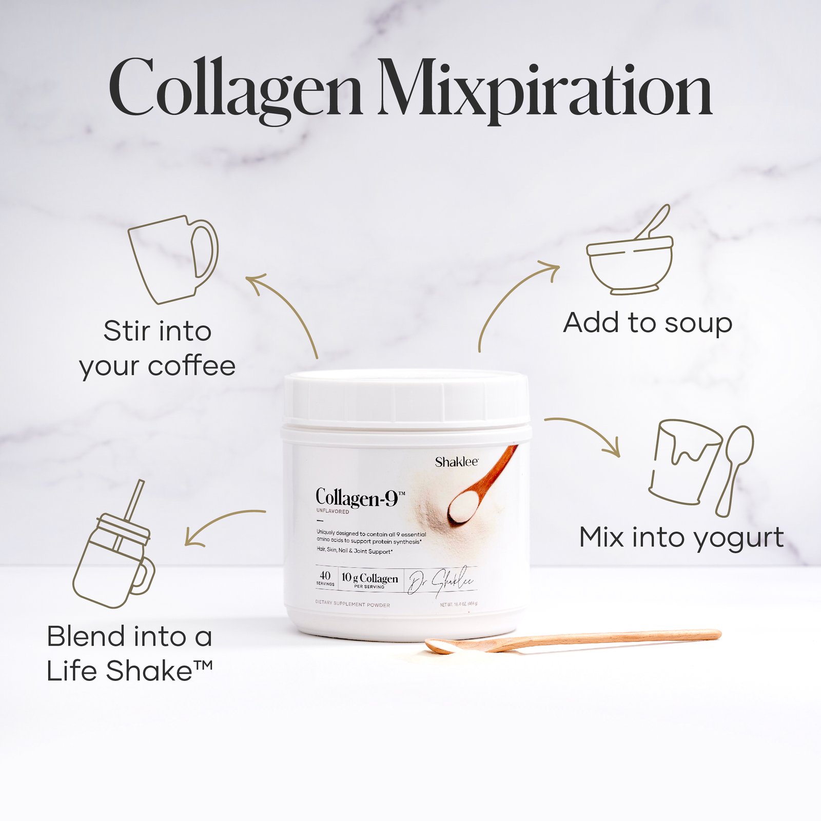 - Ideal in morning coffee, Life-Shakeâ„¢, or smoothies for an easy beauty ritual