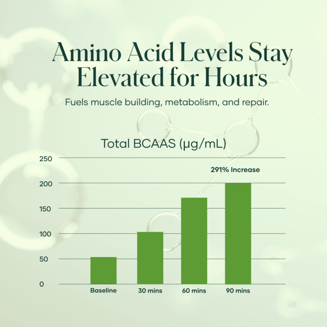 - Rapid amino acid absorption with prolonged elevation.